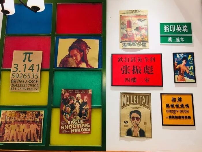 墙上还贴了许多香港明星的电影画报、李小龙、朱茵...,仿佛能看到星爷站在城墙上与紫霞对视。