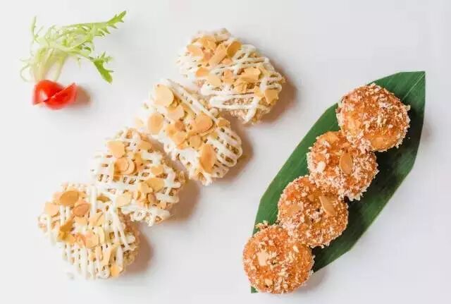 咬一口芝士焗番茄,定会被里层微酸的番茄惊喜到,芝士和番茄的酸甜结合得恰到好处,里面巧妙地塞入了威化饼,仅一口就能让你记住它。
