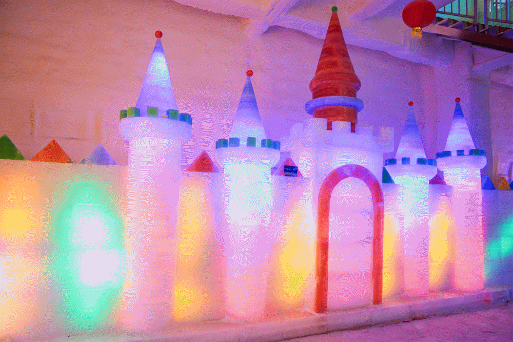冰雪世界占地面积2400多平方,是亚洲大型双层室内冰雪主题乐园。园内展出特色主题互动冰雕作品百余件,耗冰2000余吨,各种形态的冰雕作品配以数千只LED彩色灯管交相辉映,带给游客如梦如幻的北国风光。冰雪世界采用了先进的人工造雪和制冷技术,馆内温度常年保持在零度以下,积雪厚达半米,设有百米滑雪道,让您畅享滑雪的刺激和戏雪的乐趣,是集冰雕观赏、室内滑雪和冰雪互动体验于一体的特色冰雪旅游项目。