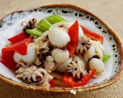 墨鱼仔、辣白菜、青红椒、姜、油、