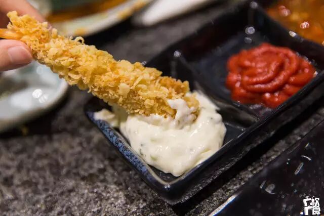 大大只得天妇罗里面都是满满的虾肉哦。一口咬下去,我和苏苏都惊呆了。韩国辣酱,沙拉酱和番茄酱任君选择。番茄酱还是真的番茄肉酱能吃到番茄肉哦!