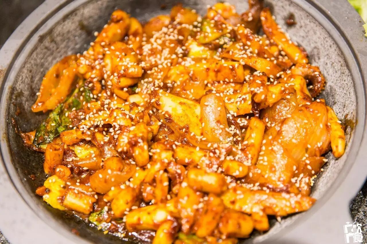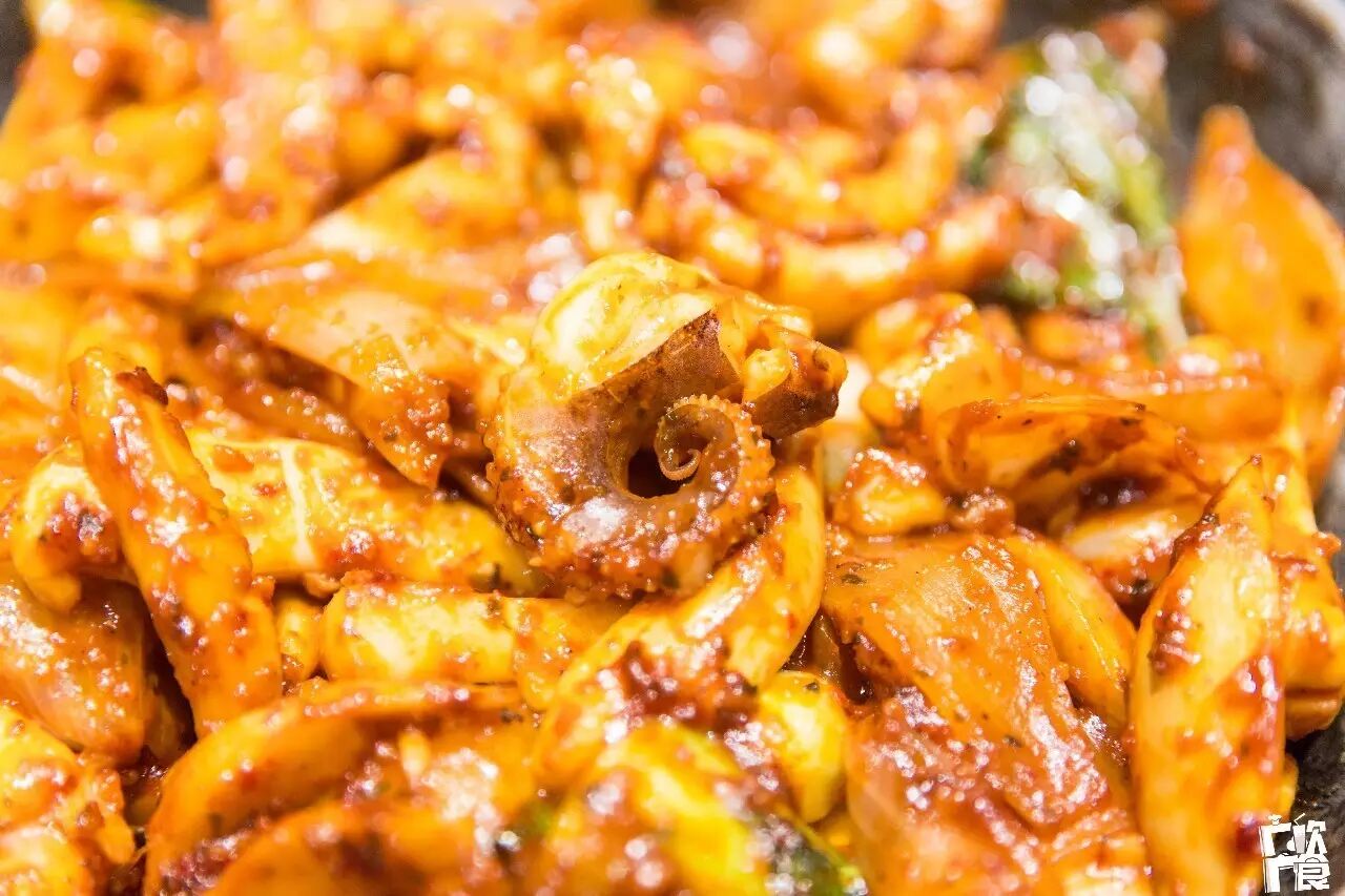墨鱼、韩国年糕、洋葱、尖椒炒,加秘制韩国辣椒炒在一起,惹味程度可想而知,苏苏在拍照的时候已经忍不住偷吃了一口..