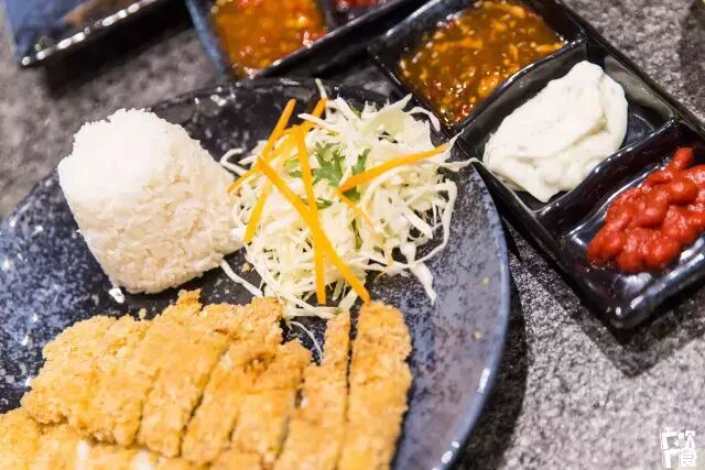 吉列猪排,鸡排就常常吃了,吉列墨鱼排真是第一次尝试,里面真材实料的墨鱼肉里面脆脆弹弹,蛮JUICE滴!!!还有3款不同酱料任意沾配,带来不同的味蕾感受。