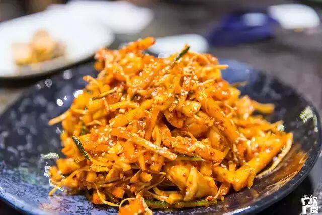 ![]() 墨鱼、韩国年糕、洋葱、尖椒炒,加秘制韩国辣椒炒在一起,惹味程度可想而知,苏苏在拍照的时候已经忍不住偷吃了一口..