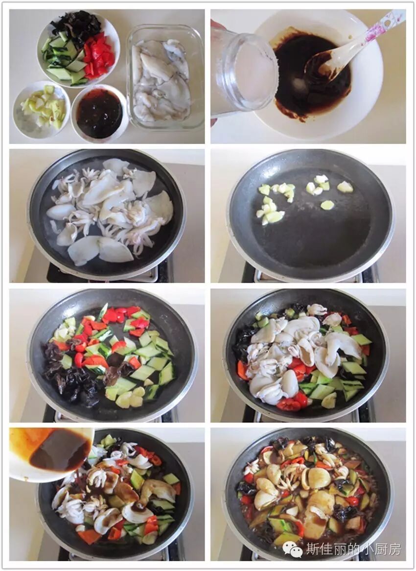 原料:墨鱼仔   黑木耳  红椒  黄瓜  姜蒜  海鲜酱  甜面酱 料酒  生抽  油盐