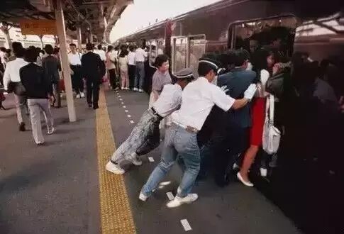 只要负责在拥挤的车门口帮助乘客挤进车厢