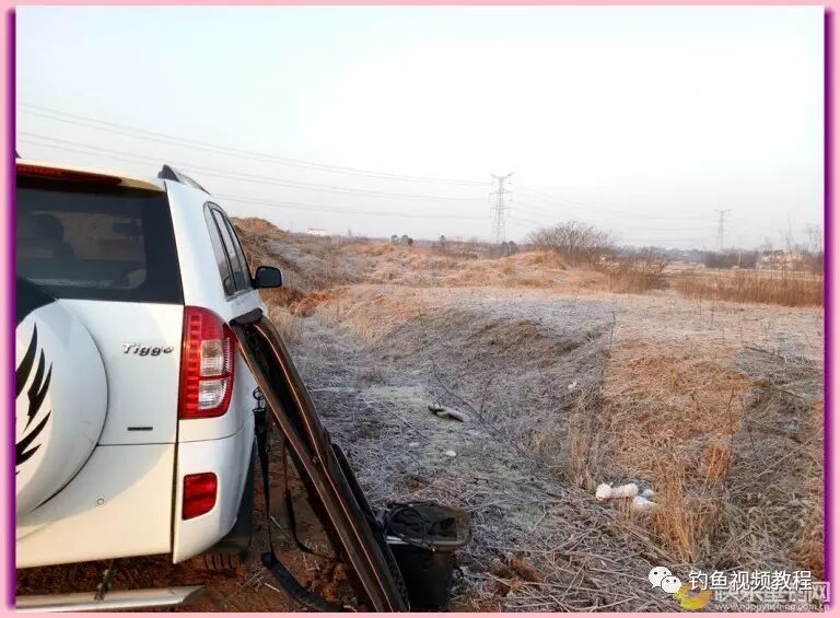 有了垂钓的计划,起个早那是必须,6:20准时起床,收拾、洗漱、就餐,到了钓场确定位置,已经是早上7:50了,找了一个地面较硬的地段停好车,取下简单的垂钓装备,这时才发现满地白霜堆积,可见寒有几分哦!管不了人是否能吃得消,要考虑的是鱼儿是否会肯咬钩哦!其实,这样的天气,鱼口会是怎么样的,心里略有几分把握哦!