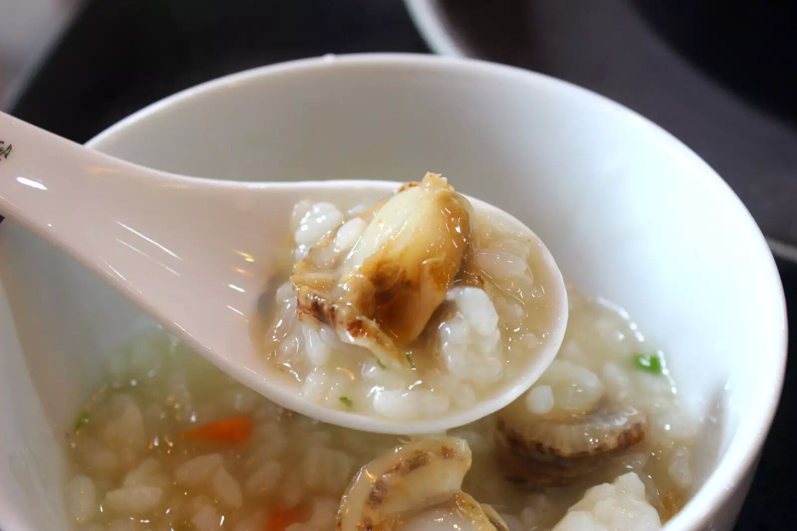 拿过奖的就它啦!福建粥与潮汕粥相比,特点就是福建粥可以看到米粒,而且比较粘稠,潮汕粥看不到米粒,比较稀。不得不说,扇贝粥的味道非常鲜美,新鲜的食材加上特殊的煮粥技巧,完全把海鲜的味道融入到了整锅粥里。