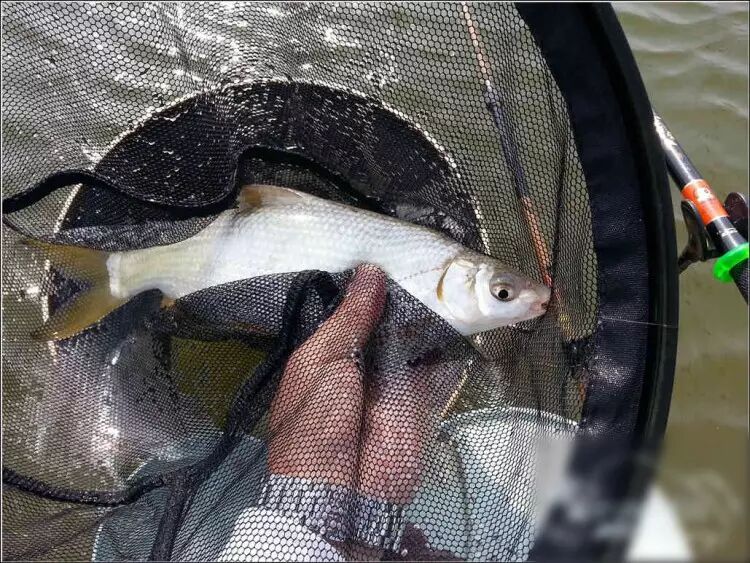 正确的姿势是在上鱼后马上向左侧倒竿,鱼不要拉出水面,划一个弧形,把鱼牵到面前的过程已消耗了鱼的冲击力,这时可以提鱼入护,大点的鱼可用抄网抄取。