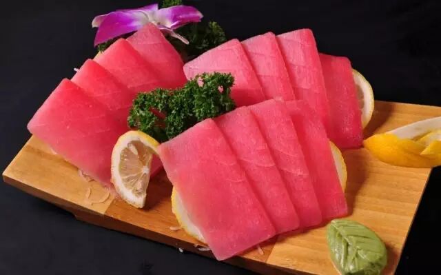 其实金枪鱼肉质的颜色和很多因素有关,包括品种、部位、脂肪分布、切片手法等。
