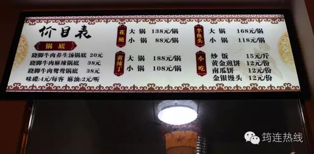 在这里品尝火锅,就是在穿梭历史。好了,我们先品茗完文化,接着来品尝朝天娇的美食了——冷锅鱼和跷脚牛肉火锅!先上价目表,明明白白消费,高高兴兴吃菜!