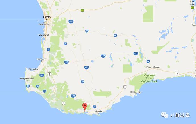 西澳大利亚,红色标记就是帕瑞海滩(Parry Beach),也就是新闻中“西澳大利亚野生三文鱼”出没的海滩