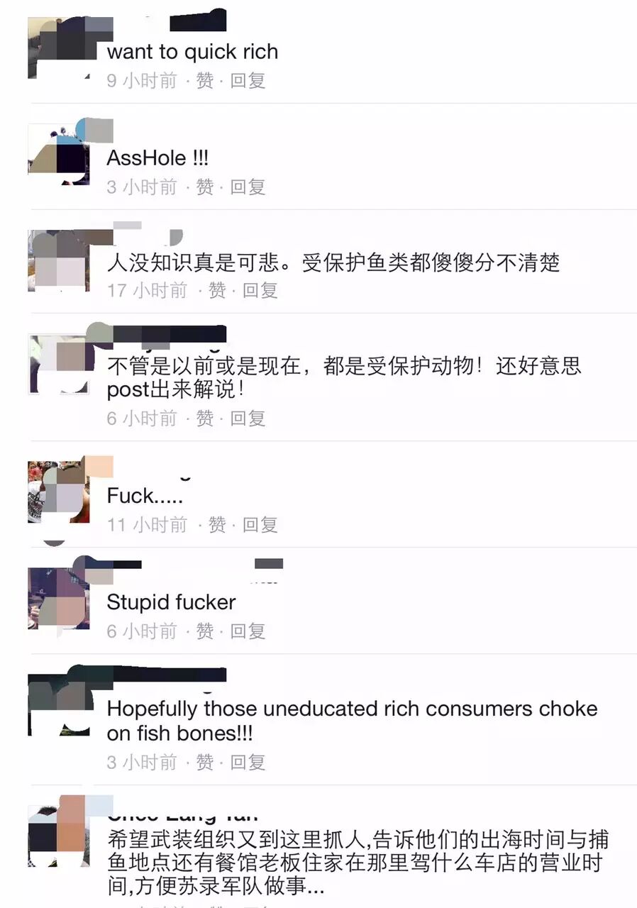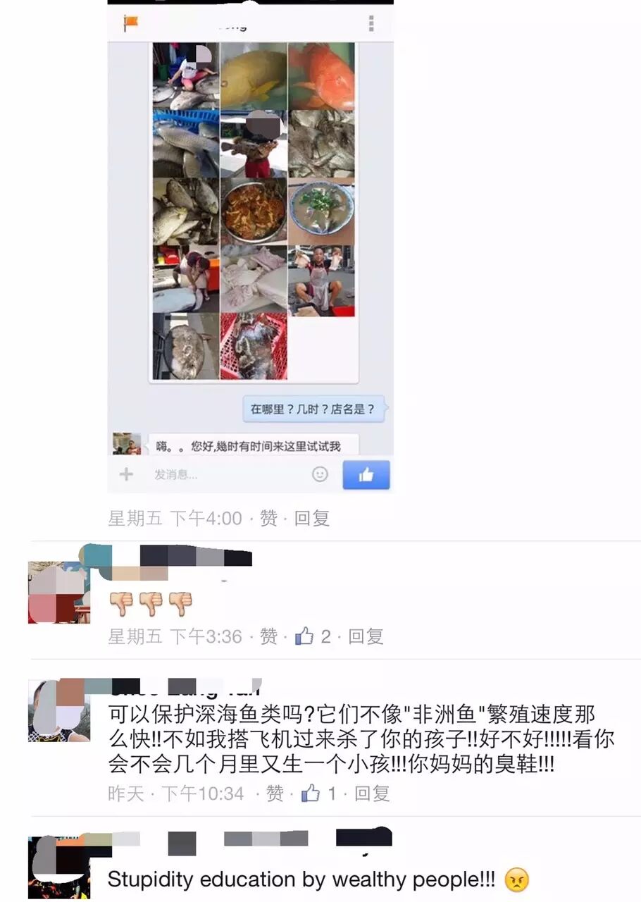 Facebook上这个帖子下面,也吸引了各种谴责之辞,其中也不乏过激的措辞,可见引起了看帖者多大的愤慨。