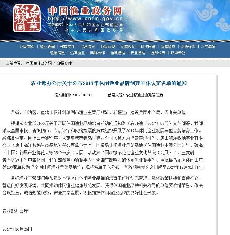 白沙岛管委会获评全国精品休闲渔业示范基地
