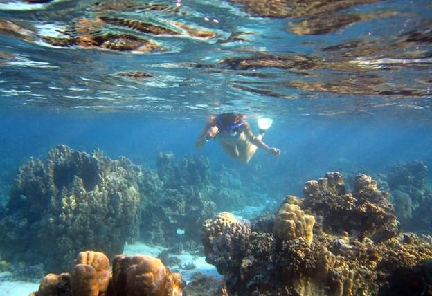 不会游泳的朋友也可以穿上救生衣,带着浮潜面罩和呼吸管,在教练的陪伴下,漂浮在有放大作用的海水中,近距离观察可爱的鱼群