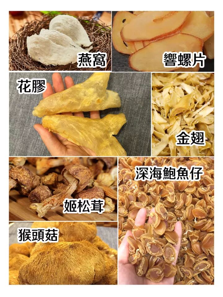无论是 燕窝,花胶,鲍鱼等等高端食材通通都有