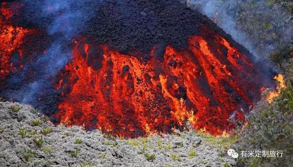 来自地球的荷尔蒙——火山喷发:留尼汪是一座相当年轻的火山岛,它的年龄只有三百万岁。位于留尼汪东南部的富尔奈斯是与夏威夷火山相媲美的世界著名活火山之一。这座火山正当壮年,荷尔蒙旺盛,三百万年前,两股熔岩从四千米的深海海底蓬勃而出,断断续续喷射至今。不用害怕,大多数时候你甚至可以走到它跟前的火山口看一眼。
