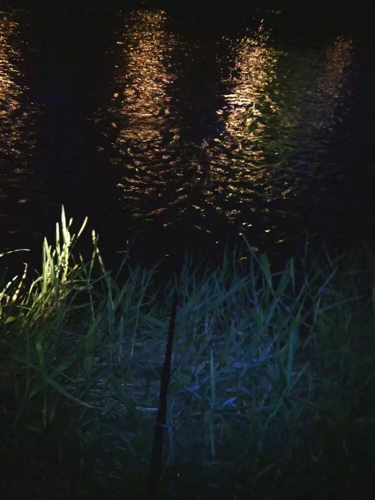 夜钓在竿尖绑了一段反光纸,有点光亮反射会非常清晰!