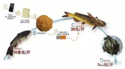 他后来观察到,鱼塘养殖出的黄辣丁,几乎全是黑色的。不过,待要出塘前的一个月,养殖户开始往鱼塘里投放另一种饲料。待出塘外卖时,黑皮肤黄辣丁已“穿”上漂亮的黄色外衣,卖出价也高出先前许多。