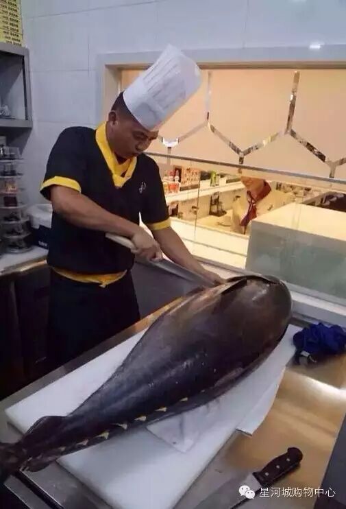 星河城千羽寿司周年店庆啦!7月12日 中午将展示最新鲜顶级冰鲜蓝鳍金枪鱼原条鱼,重量约60公斤、体产1.5米左右,专业料理师主理精彩的金枪鱼解体秀表演主持开鱼仪式,作为刺身控的吃货们 怎么能错过这么一次难得的机会!