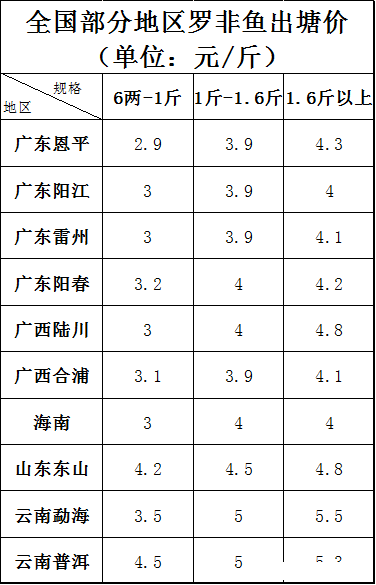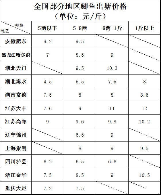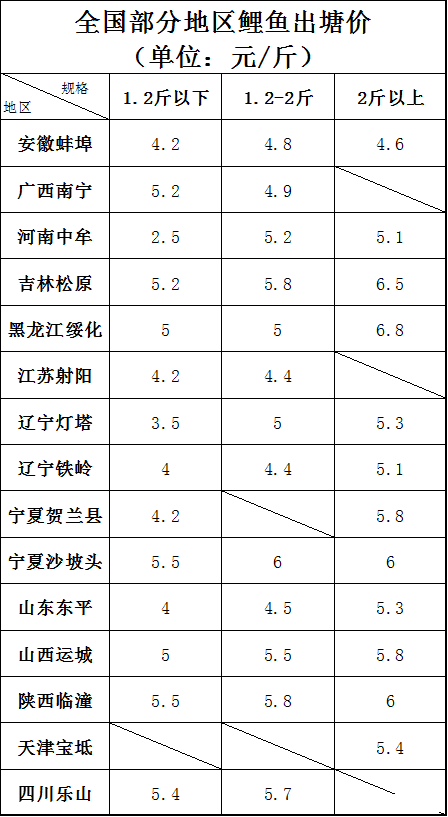 以下是全国部分地区淡水鱼出塘价格,有出鱼需要的朋友可以参考: