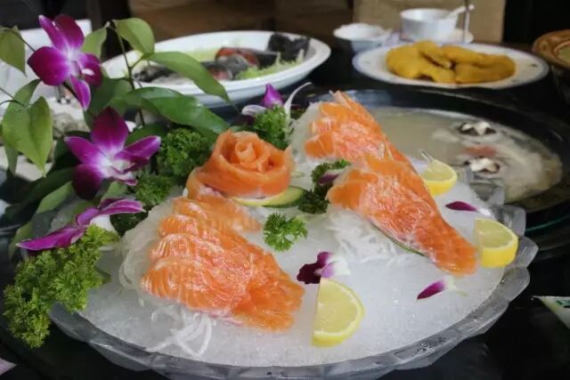 新鲜,是这里的最大特色,一小时前还在池塘中游走的三文鱼,被厨师施魔法一般变入餐桌:三文鱼刺身、烫鱼片、铁板煎鱼、香辣鱼排……(原谅犀牛君光顾着吃忘记拍照,不过还是留给大家更多惊喜去现场品尝吧)