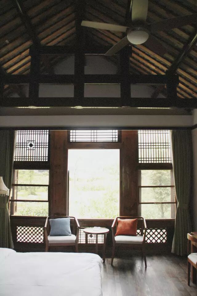 绿水青山农庄共计22间客房,分为观景大床房、观景标准房及观景套房。传统的青瓦椽木坡式屋顶使屋顶调高数米,像极了小时候奶奶家的老屋。