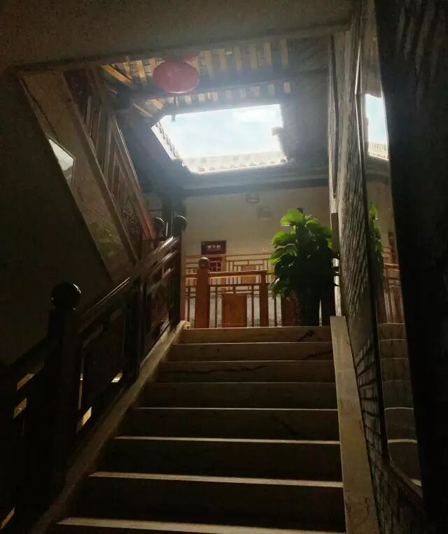 南北两侧两处天井,形成了良好的“穿堂风”,同时檐廊串联起上下楼层的房间。天井漏出的阳光恰好洒在池塘里,夏日的倦怠感瞬间被驱走。