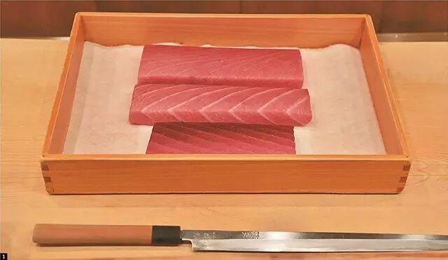 问起这位行家,寿司店美味的秘诀是什么?“刚捕来的金枪鱼真是一点美味都没有!”铃木隆久说道,“都说鱼最主要的是鲜度,然而金枪鱼却是另一回事。从钓上来到买到手,要有三天的时间,随后,熟练的寿司师傅还要醒肉。”铃木比喻道,“腹部的肉,要醒个一周到10天。都说‘入棺四十九日’,对于金枪鱼来说,就要让他在‘食材棺’里味道得到升华。”那么红肉呢?“用酱油腌制50分钟左右,去掉酱油后,继续醒6至7小时才行。”