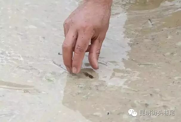 ▽泥水交融的地方,土狗就在水面上四处乱窜