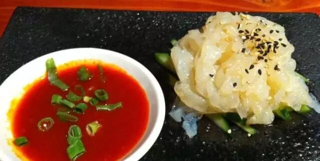 “很多人大概对水母的味道跟口感有些误解。在店里我们将水母切成小片状,放上芝麻,配上小碗酱汁,这是非常传统的日式做法。 水母吃起来清脆滑爽,但不会像果冻凝胶那样松散的感觉,特殊的口感让尝过它的客人念念不忘。”