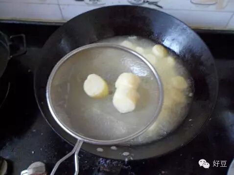 加入番茄酱,烧开后放入炸好的日本豆腐,并用淀粉水勾芡 ↓