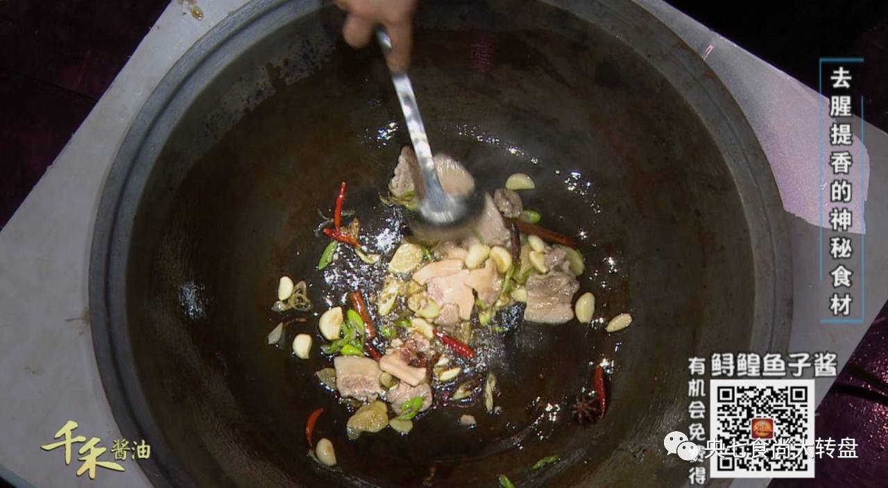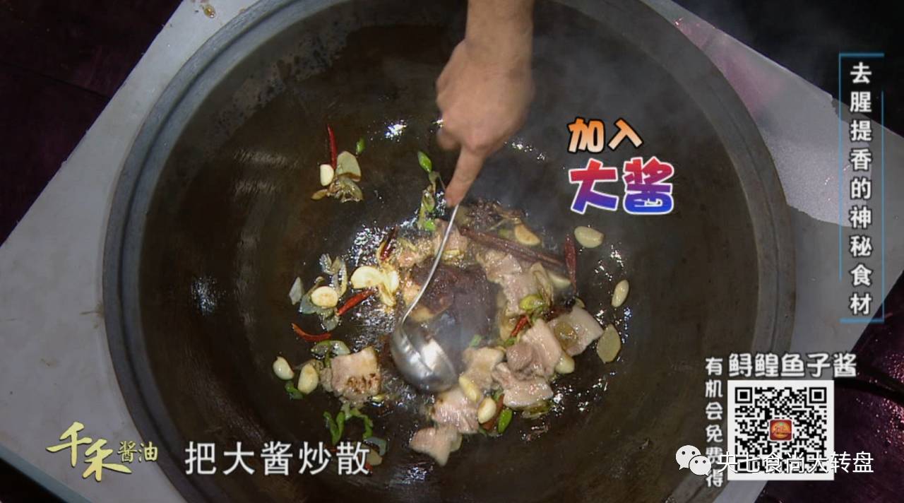 4、五花肉炒制微微变色,加入东北大酱炒碎