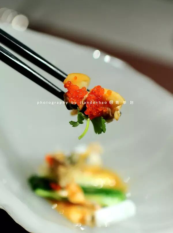 厚切三文鱼第一口没有沾任何调料,入口是油润中微微的带点鲜咸,空口吃也是能接受的。然后沾了日式酱油辣根,这个口感更加的完美,用四个字来形容就是肥嫩香润!至于盐糖的量和比例大厨没有说,这是人家的秘密哈,好吧,想吃到这么独特的美味也不难,十二月起,杨大厨就带着他的厨师推荐菜品,在30层的新鲜餐厅等着您了!