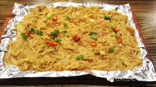 金针菇向来广受食客们的推崇,滑溜的金针菇,经过烤制后又有点脆的口感,异常鲜美。