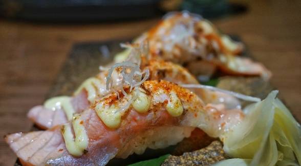 三选一限定刺身选了活青龙和蓝鲸吞拿鱼,我跟我家宝宝一致觉得活青龙味道更好!鳌虾任点,几款虾生唯有鳌虾没有剥虾壳,而且壳很硬,但服务员会教你点剥!