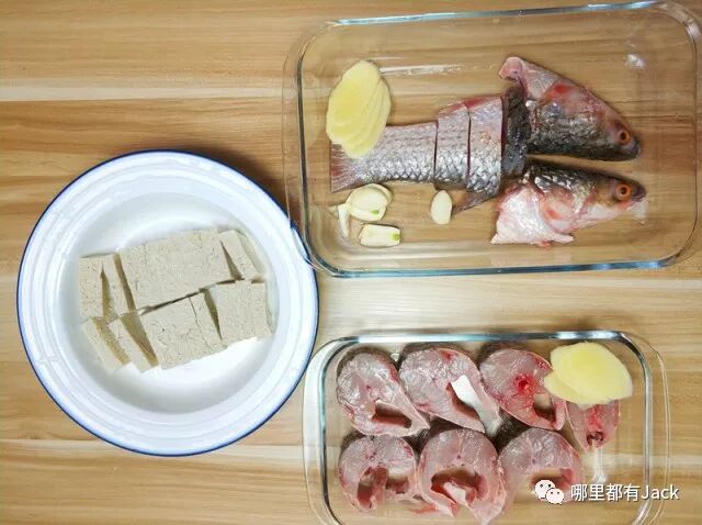 正好冰箱里前两天冻了块冻豆腐,拿出来炖鱼汤,冻豆腐能吸收鱼汤的滋味,汤也好喝,豆腐也好吃。