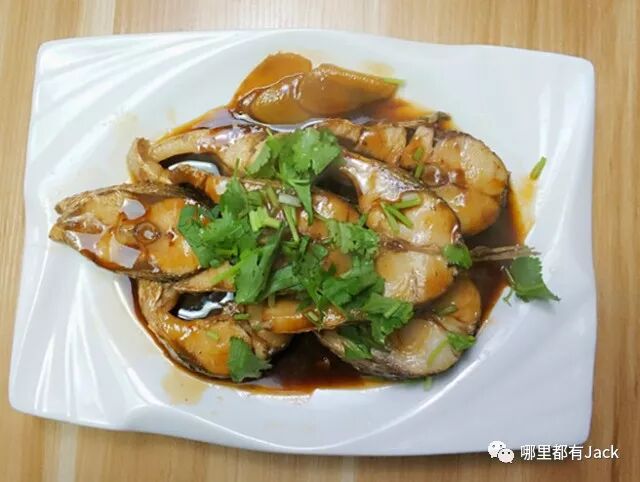 继续快手菜,切段的鱼身下锅两面稍稍煎一下,下姜片,料酒,生抽,盐,老抽,糖,加水没过鱼身煮到收汁,因为觉得这种鱼本身就是挺鲜的,所以不想放大料去盖掉它的味道。