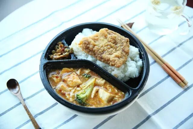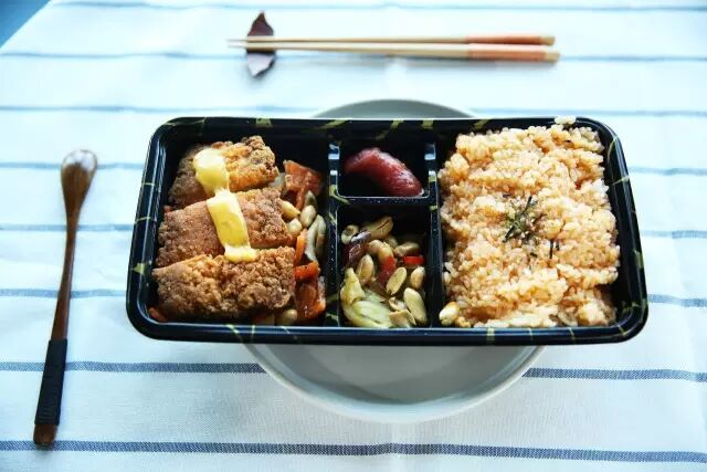 便当里比脸还大的炸鸡块,肉是新鲜,可惜淀粉处理得不好就变成了小小败笔,但不至于踩雷。