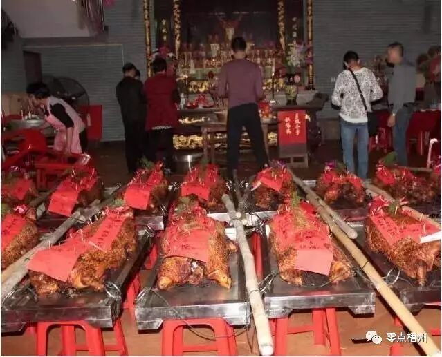 祭龙神:邀请有着东方狮王之称的藤县禤洲狮队开路,外加抬16只烧猪游街祭龙神。