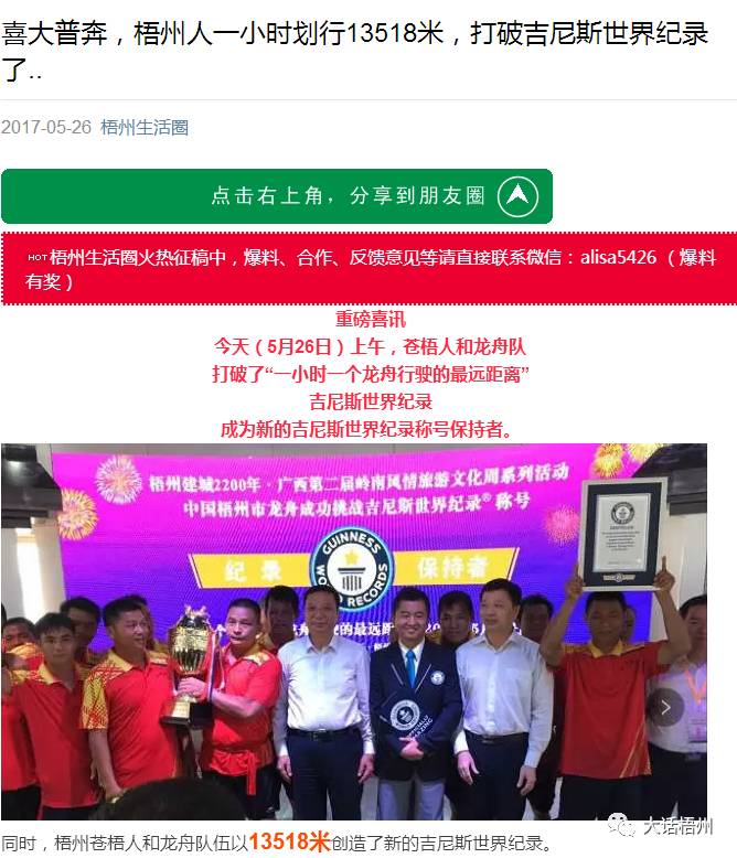 今天,全梧州市的人都在为苍梧县人和龙舟队叫好。,还是对旅游产业的带动,甚至对梧州市300万人自我认同感的提升,苍梧县人和龙舟队创纪录的盛举都有着深远意义。
