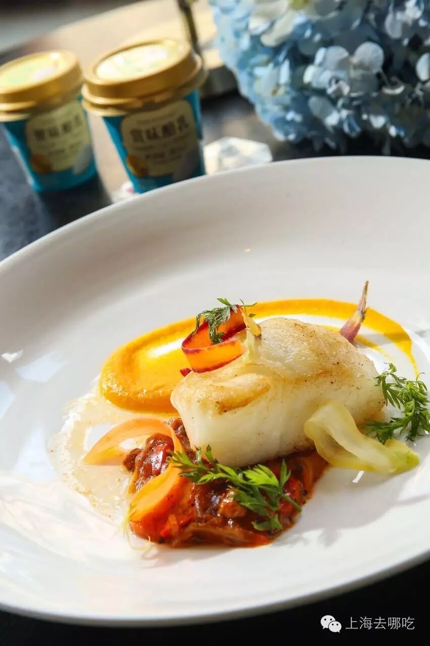 主要食材为银鳕鱼,它属于冷水域的深海鱼,营养价值极高,并且富含多种维生素及蛋白质,为正午时光带去满满精力,混合意式煨甜椒和莳萝能够保证口感的清爽。用赏味酪乳调制了孜然酸奶胡萝卜泥,以酪乳的美味口感来激发鳕鱼的鲜嫩。