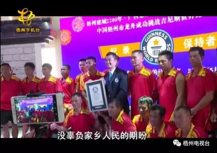 一条龙舟、一个小时,一个新纪录。参赛的22名队员没辜负家乡人民的期盼,在吉尼斯世界纪录的名册镌刻下自己的名字。他们当中年龄最大的55岁,最小的21岁,奋力拼搏激流勇进的龙舟精神在一代代梧州人中传承着。