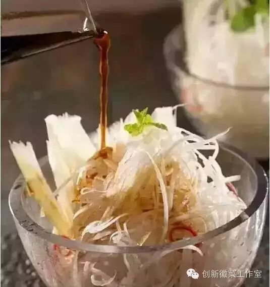 4、走菜时配三种味汁,姜味汁(姜米+香醋)、鲜椒味汁(鲜红小米辣+辣鲜露)、咸鲜味汁(鸡汤+香菜末)。