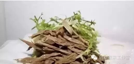 发好黑腐竹150克,苦菊嫩芽3克,蒜泥15克。