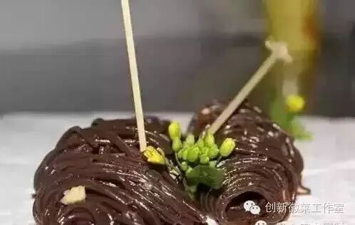 蕨菜粉烫熟,加入所有调料拌匀,用筷子卷两卷,摆盘即可。