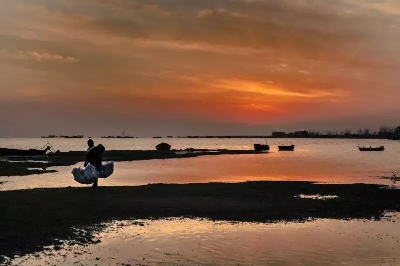 一道残阳铺水中,半江瑟瑟半江红。