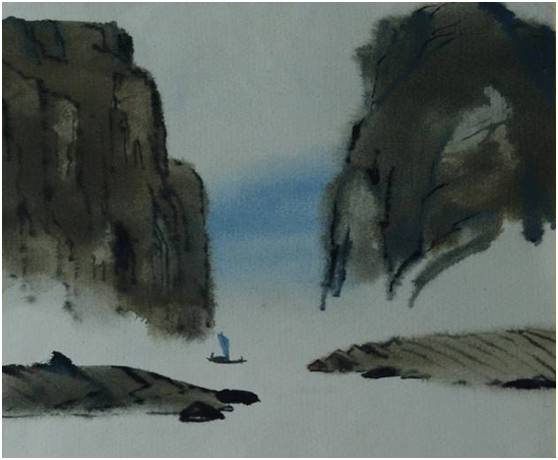 两岸青山相对出,孤帆一片日边来。