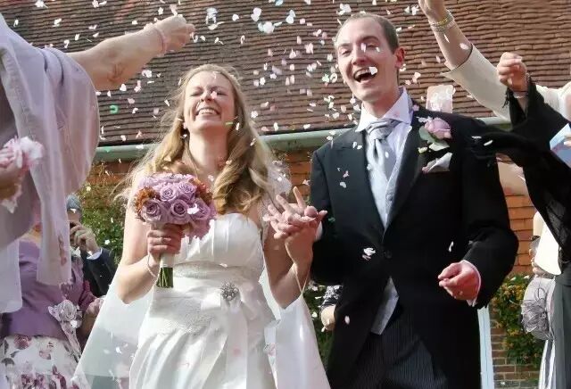 英国:贮放时间长的蛋糕传统的英国式婚礼,新娘会手持象征好运的马蹄莲,若新人住在郊外,则要与观礼嘉宾步经教堂,并于途中洒满橙花。英国人的婚礼多在正午举行,随后安排午餐聚会,称作新婚早餐。而英式的结婚蛋糕由大量水果制成,并在蛋糕面上饰以碎扁桃仁,顶层唤作“ChristeningCake”,有“诞生之瓶”之意,会保留至第一个婴儿出生。
