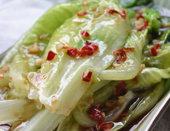 2.选择大片而完整的放入锅中焯水至叶片变软,略微透明。